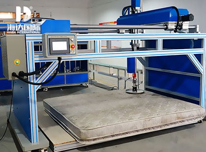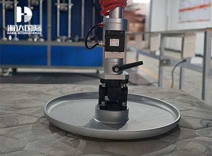 海达仪器HD-F779 床垫软硬度试验仪适用于不同床垫的软硬度测试,在床垫不同位置加载一定载荷,比较不同床垫的加载曲线线性及相同加载点的力值偏差,从而判定床垫软硬度及硬度等级,提高产品的品质。