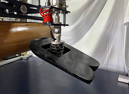 将床垫用夹具固定在试验机平台中心位置,采用一个滚动式加载模块置于水平放置的床垫的加载部位,以一定频率滚动,对床垫进行往复加载,以检验床垫对长期重复性滚动荷载的承受能力。按照测试标准设定好测试条件,进行各个项目的测试;软件自动计算测试结果并保存!