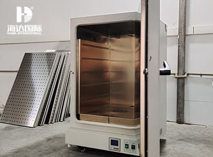 海达仪器HD-E804-25AS热风循环干燥烘箱,外壳一般采用薄钢板制作,表面烤漆,工作室采用优质的结构钢板制作。外壳与工作室之间填充硅酸铝纤维。加热器安装底部,也可安置顶部或两侧。温度控制仪表采用数显智能表,PID调节:配置999.99小时时间控制器并与报警装置相连接。使烘箱的操作更简便,快捷与有效。
