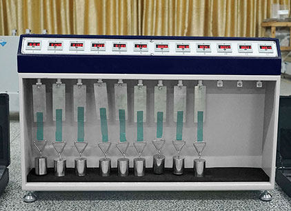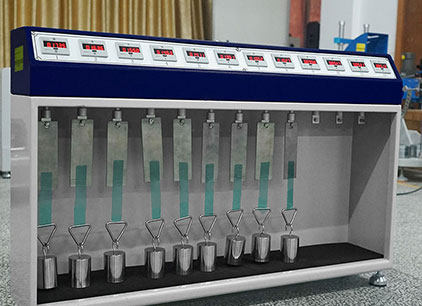 方法A:试样在裁剪前,先去除最外的3-6层胶带,裁剪最少3份12mm(或24mm)宽长约150mm的粘胶带,试样解卷后5分钟内粘试在验钢板上,粘贴面积12×12mm²(或24×24mm²),用2kg±100的标准压辊以10mm/s的速度来回辗压三次,将不锈钢三角环扣与试验钢板对齐,使试样自由端绑定在不锈钢三角环扣上。试样准备好后在1分钟内,将钢板挂于试验仪测试位上,轻轻挂上砝码,工位自动开始计时,当粘胶带自然脱落后,对应砝码模组的数显累时器记录保持时间,测试结束,人工记录数据并综合数据评定胶带粘合的持粘性。