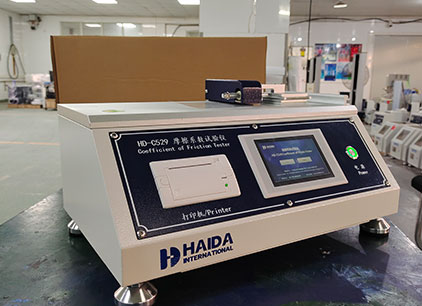 海达仪器HD-C529 摩擦系数试验仪,按照《GB 10006-88》及《ISO 8295-1986》标准,针对厚度在0.2mm以下的非粘性塑料薄膜和薄片,在自身或在其他材料表面滑动时,动摩擦系数和静摩擦系数的测定,也可用于纸张、纺织品、橡胶、铝箔、印刷品及屏幕保护膜等产品。通过摩擦系数的测定值,判断被测产品的顺滑度。