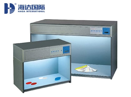 海达仪器HD-A825-1对色灯箱本,产品提供多种标准光源,各光源依据C.I.E.标准可使用于纺织品、印刷品、荧光物等材料的颜色比较,演色评价Ra98以上。因光源、照度及环境不同,使产品在配色、对色上,难以一致或发生色彩判断错误,因此本灯特别设计而能提供标准、客观的光度,使原材料、产品色彩之质量及比对,得以精确控制