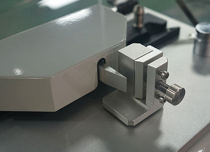 测试样品依据标准装夹与夹具上,通过设定的测试角度设定参数。通过定位插销调整刀口至夹具端面的测试距离。测试时程序控制夹具依据设定参数转动,样品通过安装在高精度力值传感器上的测试头,将测试数据显示在智能屏幕上。