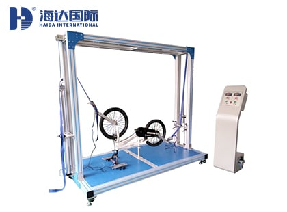 海达仪器HD-J239自行车车轮夹持力脱卸试验机依据标准分别对前后车轮施加一定的力,测试车轮夹持装置及快卸机构的强度,测试完毕后,前轴和前叉应无相对应移动,沿车轮的拆卸方向,在前轴两侧对称地施加一个2300N的力,为时1min。