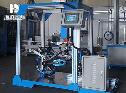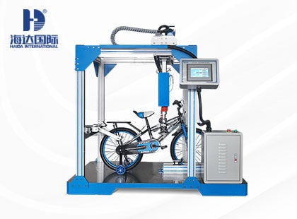 海达仪器HD-J242-1 驱动系统静负荷试验仪适用于单速系统下测量儿童自行车的车架、脚蹬、传动系统和后轮的组合件,如有变速机构也含在试验范围内,分别对左右脚蹬的中心逐渐施加一定的力,并保持15s,检查是否有损坏现象。